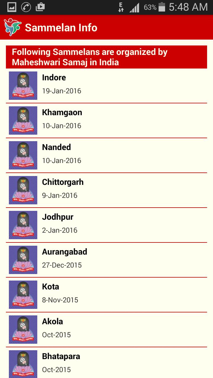 - イベントオプションは、Sammelanの詳細とすべての候補者のプロフィール /バイオデータを教えてくれます。
