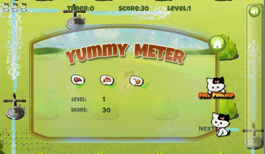 Meow Adventure 、Unity Game Engineを使用して作成した最初のゲームタイトルです。それは「最高のルートを選ぶ」爆撃機スタイルのサバイバルゲームです。 Meowmeowを制御するユーザーとして、各レベルで3種類の食品すべてを食べるためのルートを戦略的に選択し、タイマーがなくなったときにスプリンクラーの水にぶつかることを避けなければなりません。