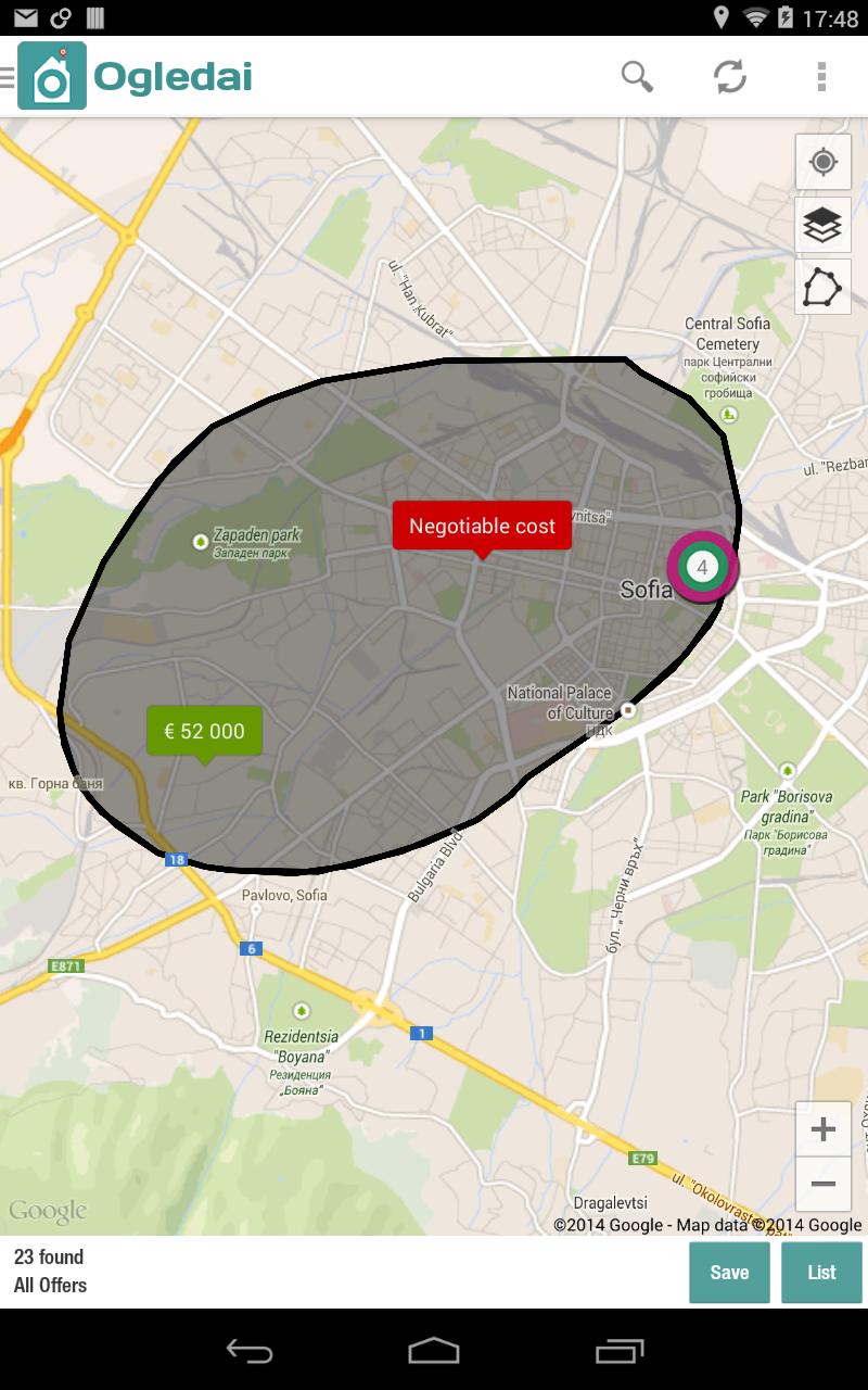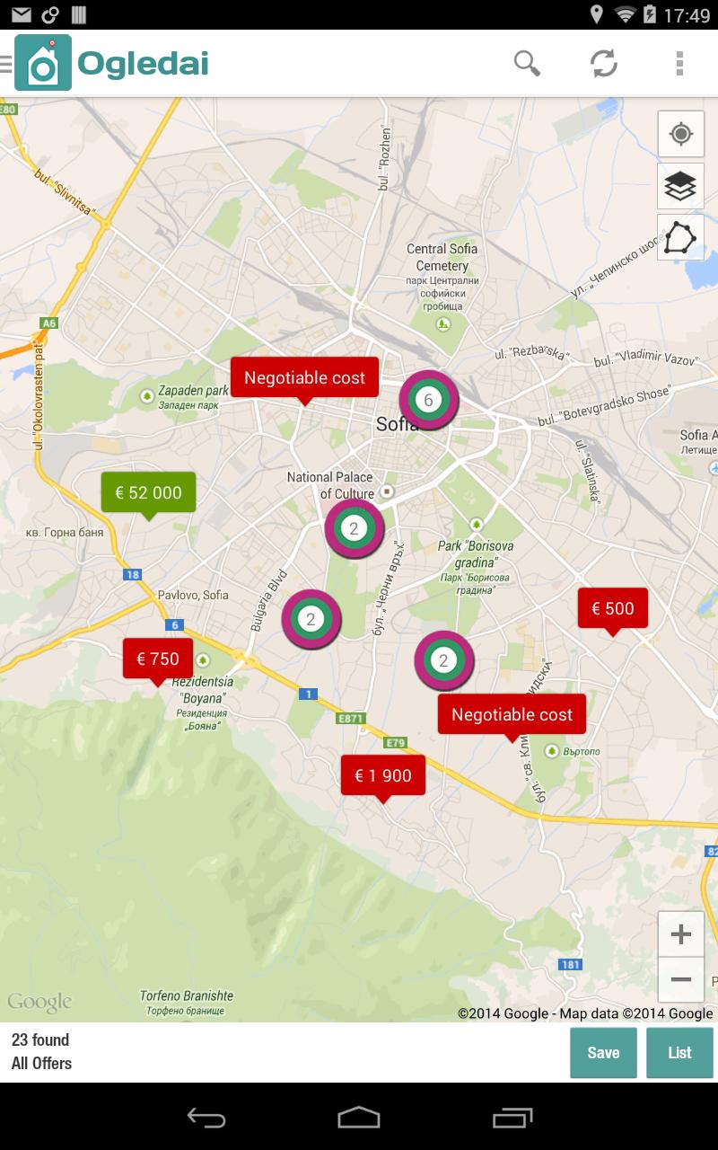 - Twitter, Facebook 또는 Google +에서 친구와 부동산을 공유하는 빠른 옵션;