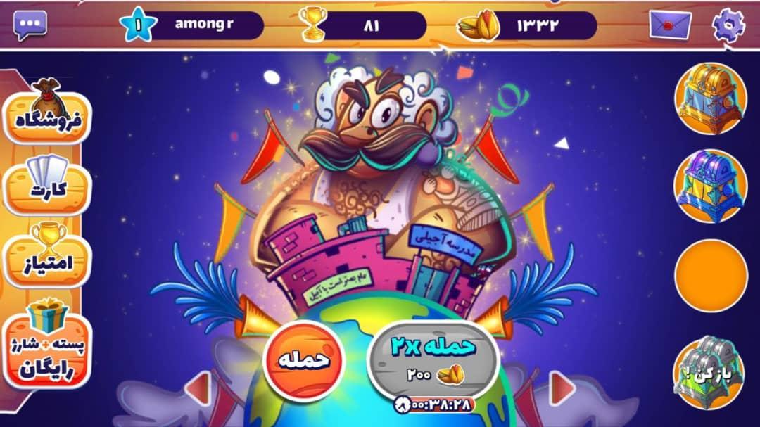 Nuts는 플레이어가 카드를 사용하는 다른 플레이어와 싸우는 온라인 게임이며, 승리하면 피스타치오 플레이어와 다양한 상자에게 승리 할뿐만 아니라 다양한 상자에게 수여됩니다. 각 카드에는 특정 기능이 있으며 플레이어는 전략과 창의성에 따라 특정 카드 조합을 사용할 수 있으며 궁극적으로 싸움에서 이길 수 있습니다.