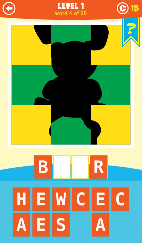 그림자로 물체를 추측 할 수 있습니까? 스크램블 된 그림 퍼즐을보고 단어를 추측하려고 노력하십시오. Word 퀴즈 게임을 좋아한다면이 새로운 가족 게임을 좋아할 것입니다! 그림 타일을 탭하여 위치를 전환하고 원본 이미지의 일부를 드러냅니다. 그림자를보고 단어를 추측하십시오!