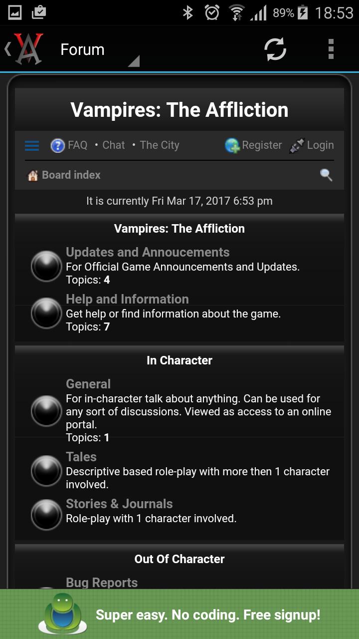 Vampires: The Affliction 플레이어 캐릭터 상호 작용, 롤 플레이, PVP 전투 및 캐릭터 빌딩에 중점을 둔 간단한 RPG입니다.