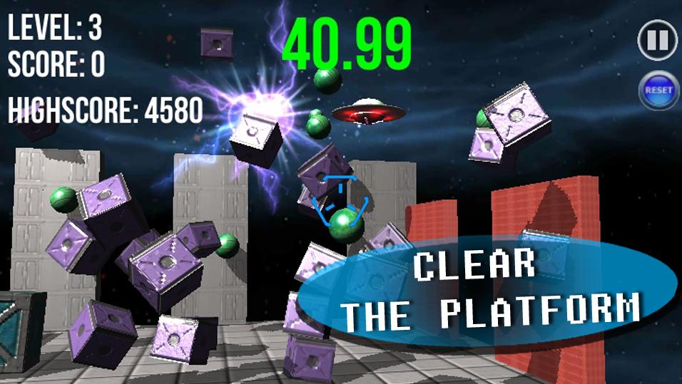 UFO를 쏘고 중력을 사용 하여이 중독성 물리 슈터에서 플랫폼을 제거하십시오.