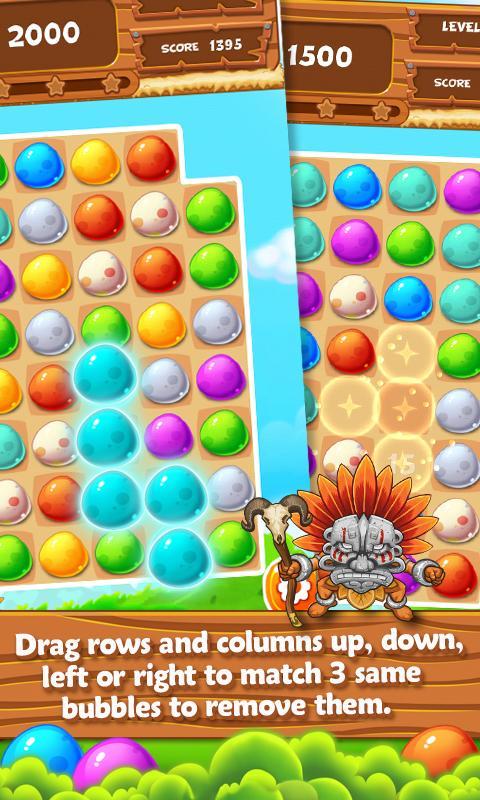 행 위아래로 줄 또는 왼쪽 및 오른쪽 열을 드래그하여 3 개 이상의 드래곤의 거품을 일치시켜 제거하십시오!