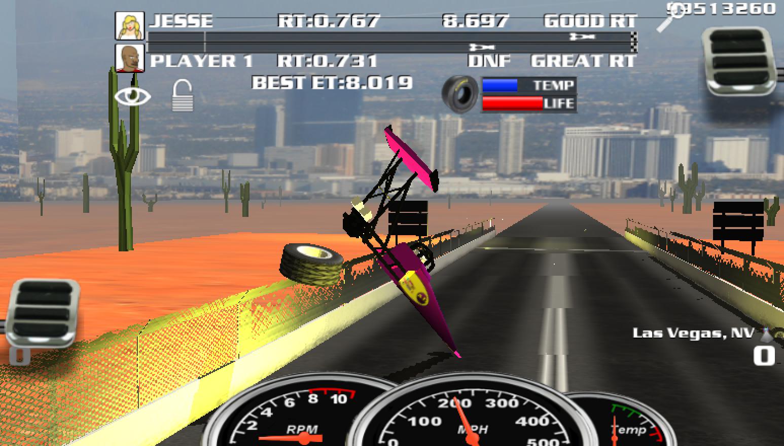 Burn Out Gasser, Methane, Nitrous 또는 NOS 구동 드래그스터, 레일, 재미있는 자동차, 제트 차 또는 오토바이를 올린 새로운 에디션 연료로 돌아 왔습니다. 그런 다음 운동화를 데우고 트랙을 찢어 버리고 완벽한 반응 시간, RT 및 추정 시간 ET로 우위를 확보 할 때 약간의 고무를 눕히십시오.