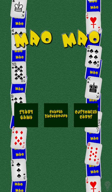 Mao Mao 에서는 1, 2 또는 3 컴퓨터 상대와 대결합니다. 목표는 상대방이하기 전에 모든 카드를 흘리는 것입니다. 그래도 캐치가 있습니다 : 많은 카드에는 당신과 당신의 상대에게 어려움을 겪는 특별한 규칙이 있습니다.