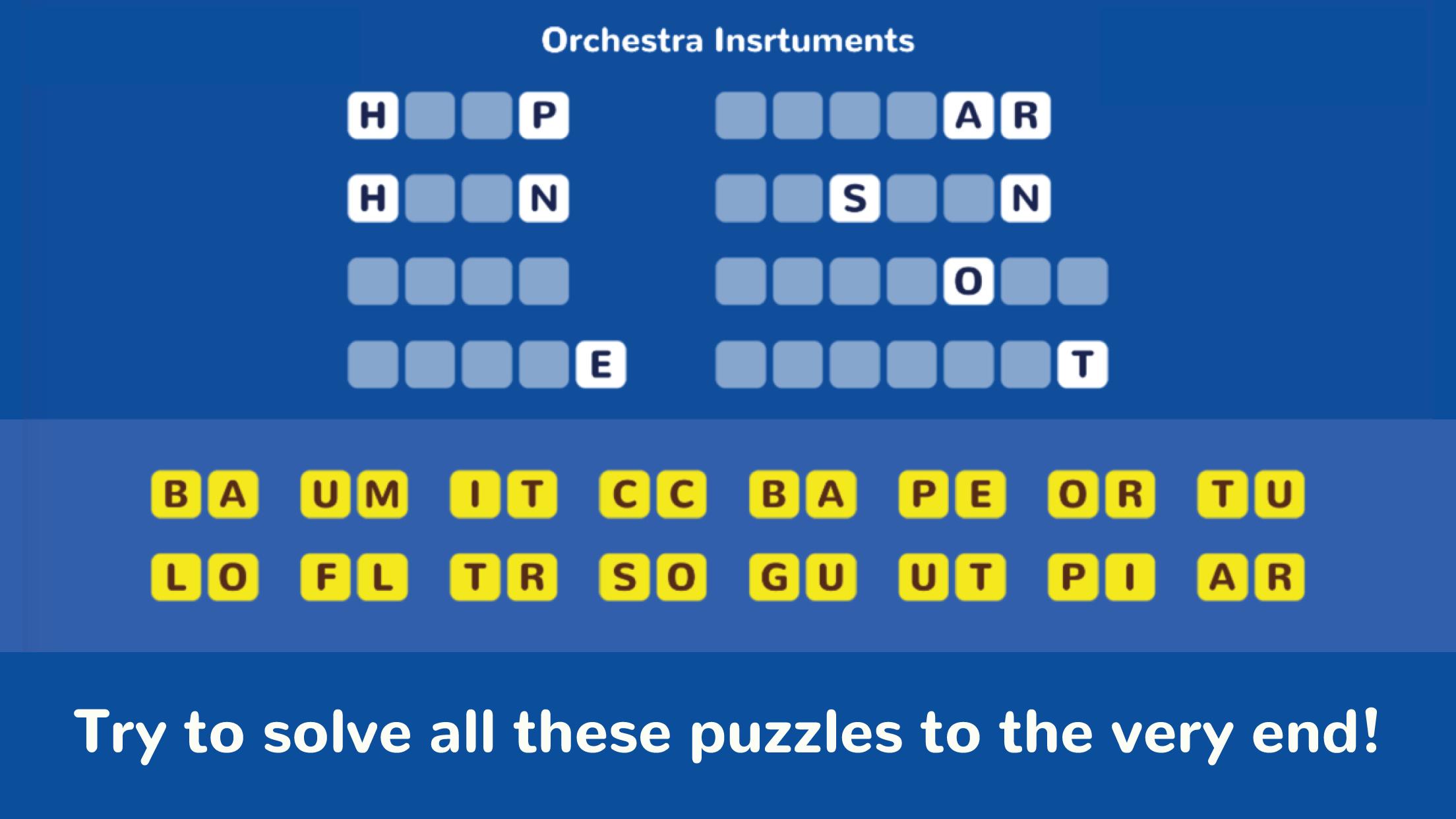 문자를 결합하여 단어를 만들고 레벨을 잠금 해제 할 수 있습니까? Easy에서 Tricky까지 수많은 단어 퍼즐이 당신을 기다리고 있습니다! 끝없는 단어 재미를 위해 새로운 퍼즐이 지속적으로 추가됩니다!