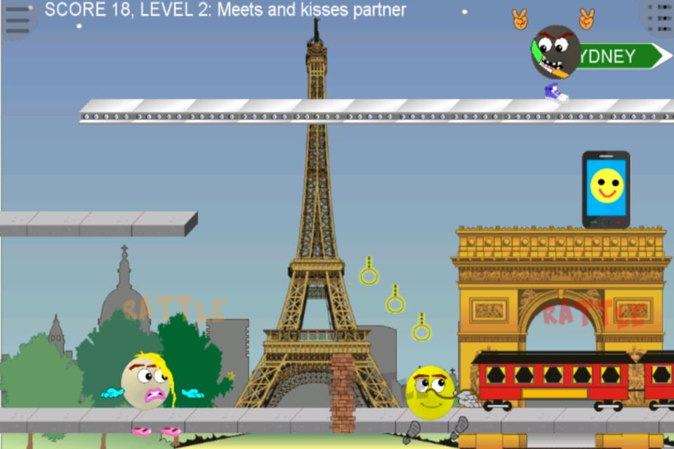 행복을 찾고있는 두 미소 (이모티콘) 연인의 모험을 살아가십시오.