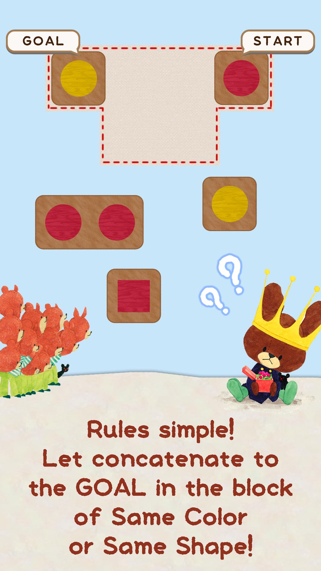 규칙은 간단합니다! "동일한 색상"또는 "동일한 모양"의 블록을 처음부터 목표에 연결하십시오!