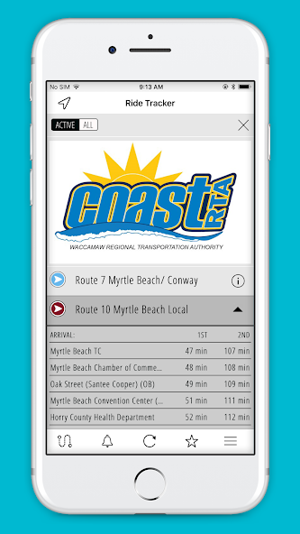 Aplicação de rastreamento de traslado para Coast RTA . Este aplicativo inclui informações de ônibus ao vivo de ônibus ao vivo com ETAs de parada e informações de rota.
