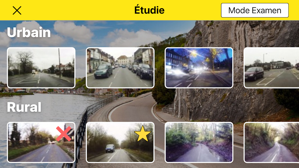 Uma sequência de vídeo é reproduzida na tela. Imagine -se dirigindo seu carro. Um risco é um evento externo que exige que você tome medidas (ajuste sua velocidade, altere a direção, buzina, sinais de trânsito ...). Você deve tocar na tela quando um perigo estiver presente. O teste consiste em 5 curtas -metragens. Você passa seu teste se você marcar 6/10 ou mais.