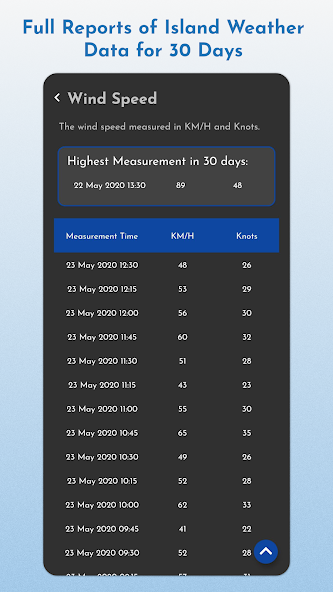 O aplicativo meteorológico usa dados obtidos diretamente da estação meteorológica da própria ilha e apresenta uma previsão de 10 dias complementada com dados do OpenWeather.