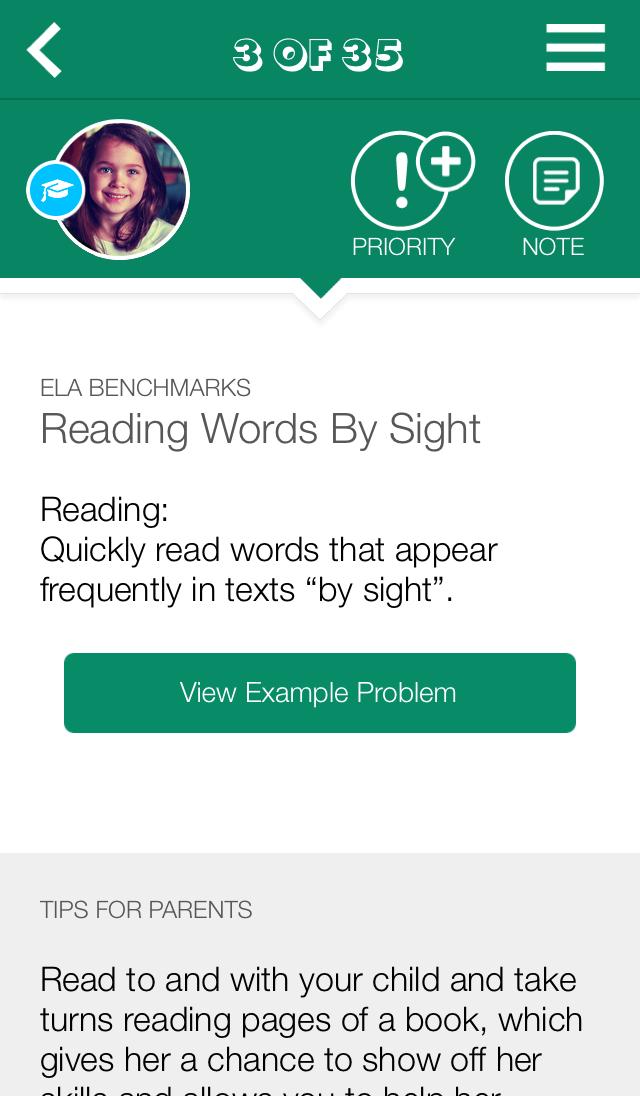 Defina prioridades para você e seu filho voltarem a usar The Parent Toolkit . Uma prioridade é um item que você marca como importante para o desenvolvimento do seu filho. Pode ser algo que você deseja revisar mais tarde ou uma dica que você deseja lembrar de tentar. Use o botão "+" para marcar itens como prioridades e crie uma lista para revisão posteriormente. Você pode marcar os itens conforme concluído depois de atingir seus objetivos. Você também pode compartilhar informações e dicas úteis em todo o aplicativo com a família, amigos e muito mais usando redes sociais ou e -mails.