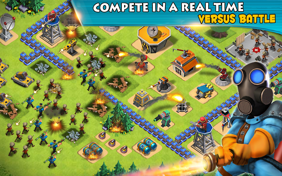 Enquanto sua base treina tropas e colhe recursos, é hora de sair e conquistar aldeias inimigas! Jogue a campanha de um jogador ou ataque a base de um jogador rival em combate em tempo real. Você terá que destruir suas defesas básicas e seus edifícios de recursos para roubar seu ouro e óleo!