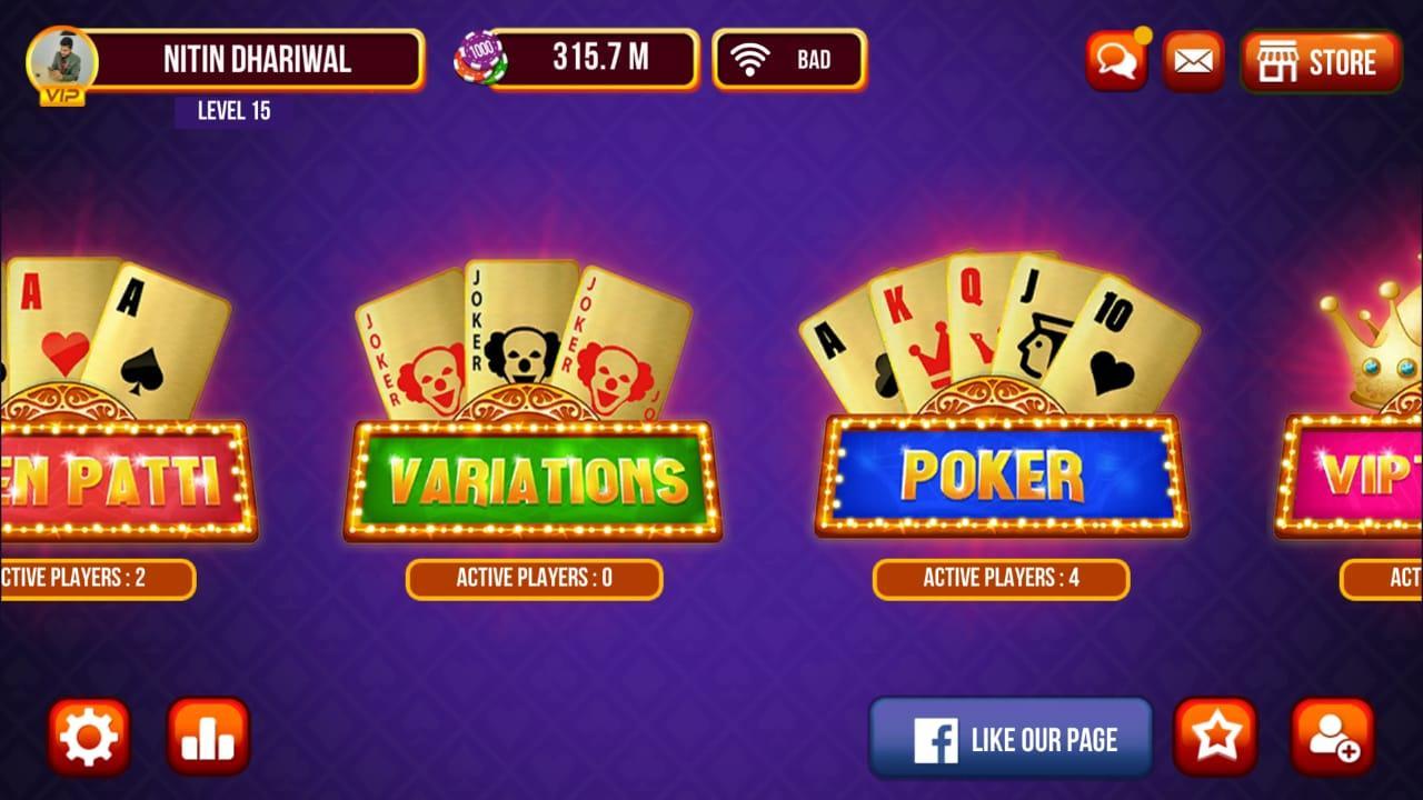 Seja você iniciante ou profissional, ficará satisfeito com o ambiente do jogo, porque oferecemos uma opção de seleção de mesa para encontrar a mesa certa e queremos que você aproveite o melhor jogo de poker indiano de Patti Teen Patti e Triple One Poker Game.
