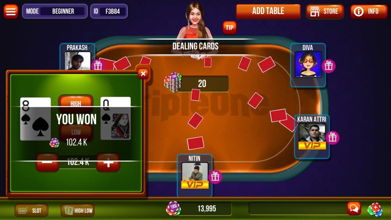 Nosso Triple One Teenpatti é uma versão indiana do Poker Brag jogada com 3 cartas, venha se juntar ao nosso jogo de cartas de poker indiano e seja adolescente Patti King ou Megggar em um jogo.