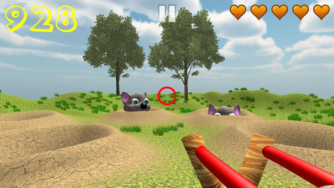 Os controles padrão do jogo usam o giroscópio do seu dispositivo. Então, para jogar o jogo, você pode ficar de pé ou sentar -se em uma cadeira giratória com o dispositivo mantido na sua frente. Em seguida, você pode girar 360 graus para ver todos os orifícios do bicho ao seu redor e quando se aparece, mira o mirt usando o círculo vermelho no centro e toque em qualquer lugar da tela para disparar.