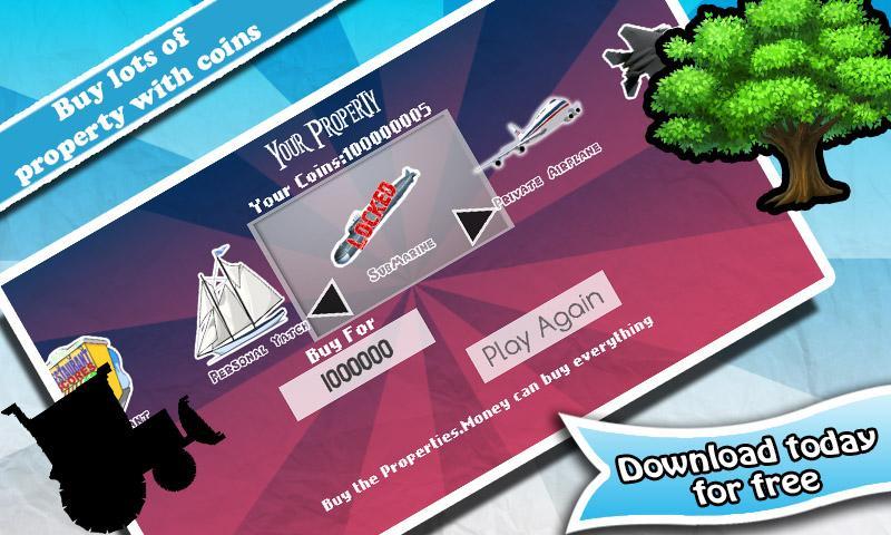 ★ Use moedas para desbloquear itens de ponta, o carro esportivo, o jato e até comprar a Terra.
