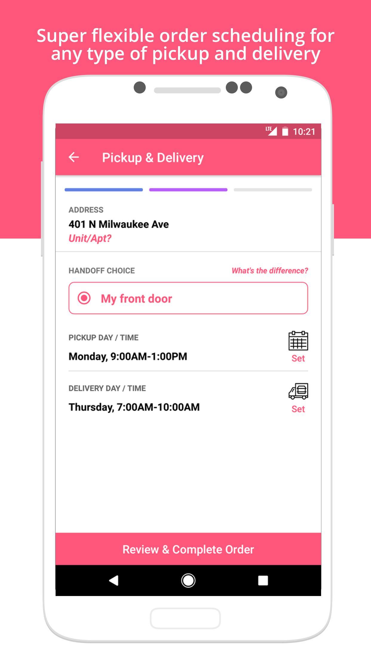 5) Запрашивайте доставку, когда это удобно, и ваш водитель прибудет с вашей чистой прачечной!