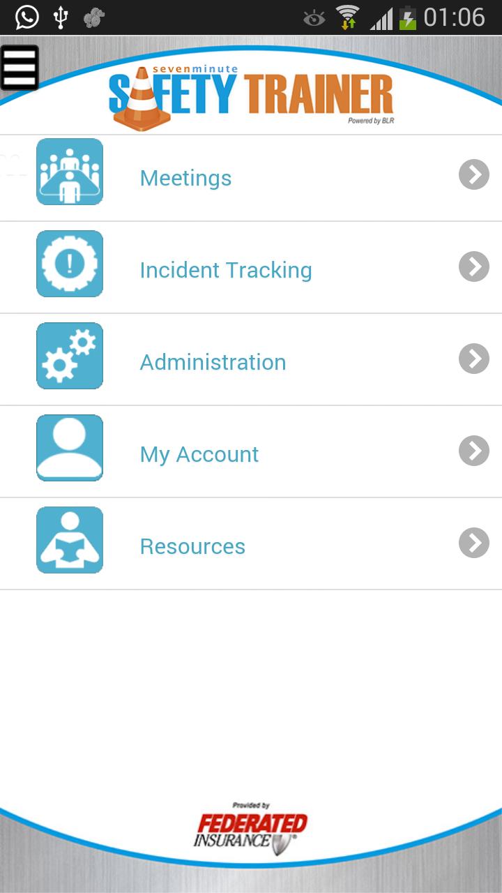 Федеративная взаимная страховая компания взволнована, чтобы предоставить мобильный инструмент для проведения безопасности на местах безопасности-семиминутного тренера по безопасности, основанного на деловых и юридических ресурсах (BLR). Это простое в использовании приложение дает вам гибкость, которую вы хотите, и хранит необходимость документации.