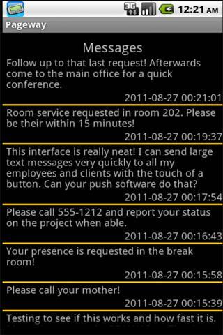 Pageway - это приемник сообщений (виртуальная пейджер)*, который основан на Android и работает с использованием технологии обмена облачными сообщениями Google. Получить и хранить сообщения отдельно от службы SMS/MMS. Addon в качестве функции для получения дубликатов с вашего существующего пейджера или SMS -устройства.