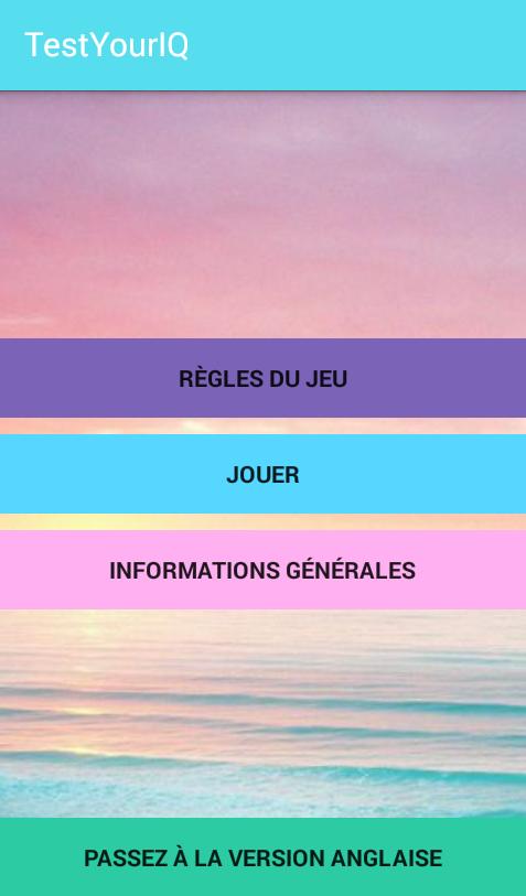 Это лучшее приложение IQ, специально предназначенное для тестирования своего IQ. Приложение доступно как на английском, так и на французском языке. Приложение содержит 15 текстовых вопросов и 5 вопросов изображения. Приложение можно использовать как в автономном режиме, так и в Интернете.