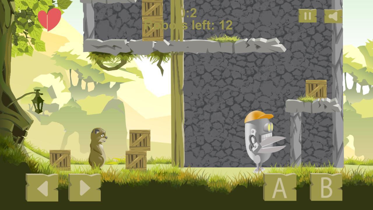 Роботы приходят в дерево и распиливают деревья, но медведь хочет спасти свой лес, помогите ему! Найти и уничтожить всех роботов. Поездки и решают головоломки.