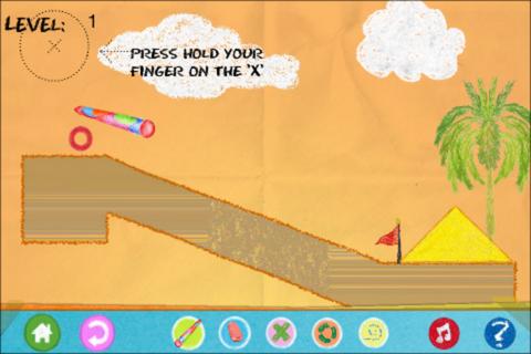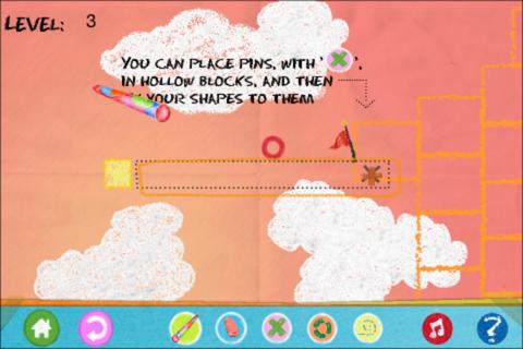 На формы, которые вы рисуете, влияют гравитация, трение и инерция. Используйте эти свойства в ваших интересах. Красный шар (или красный квадрат на некоторых уровнях) - это объект, который собирает флаги. Нарисуйте объекты таким образом, что они толкают мяч в желаемом направлении.
