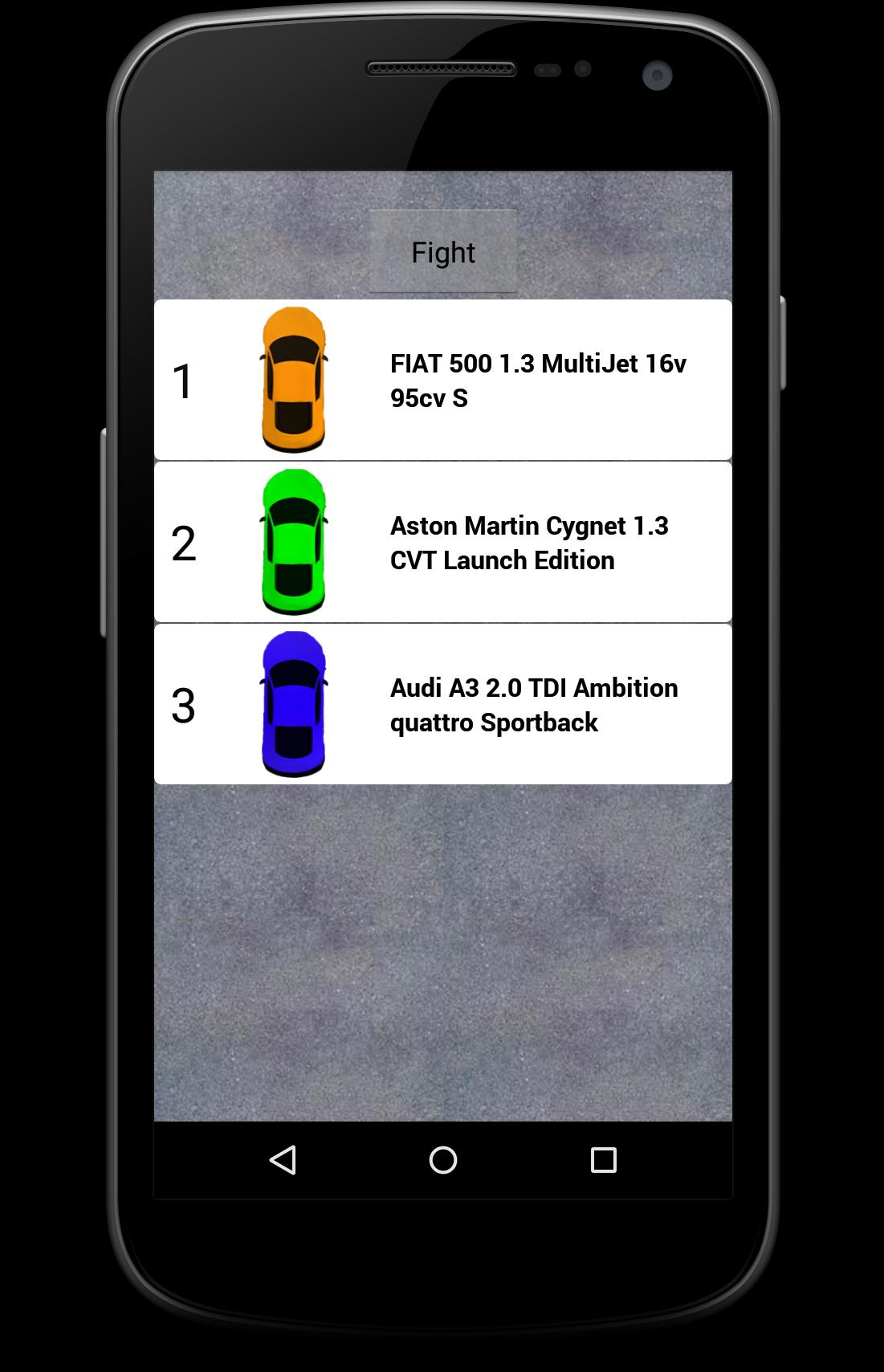 Car Fight позволяет сравнить 400 автомобилей и смотреть, как они бегают. Вы можете сравнить 2, 3 или 4 автомобиля в момент времени, и вы также можете поделиться результатом. Сравните свою машину с машиной своего друга и повеселитесь.