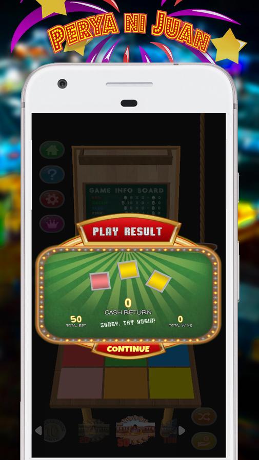 Perya ni Juan в настоящее время занимается активным развитием и подвергается кучу нового и захватывающего игрового процесса. Это ожидается ненавязчивого, но интуитивно понятного контроля и игрового взаимодействия. Симуляция для опыта в Перьяхане! Цветная игра - чисто игра случайности. Если вы выиграете, вам, должно быть, вам повезло.