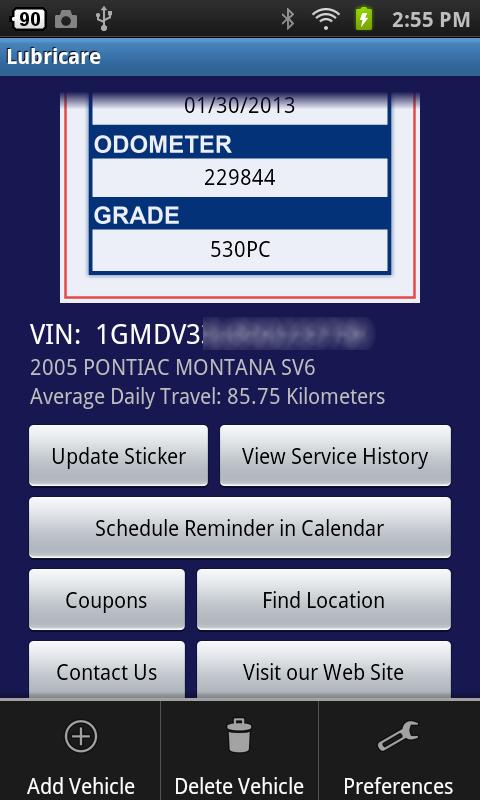 เก็บสติ๊กเกอร์เตือนการเปลี่ยนน้ำมันของยานพาหนะไว้บนสมาร์ทโฟนหรือแท็บเล็ตของคุณ เพียงสแกน Estickerid ที่พิมพ์ลงบนใบเสร็จรับเงินของคุณหรือป้อน VIN ของยาน Lubricare เพื่อเพิ่มลงในรายการของคุณ