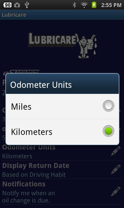 คุณสมบัติอื่น ๆ รวมถึงความสามารถในการกำหนดเวลาการแจ้งเตือนเกี่ยวกับปฏิทินของคุณตามวันที่ Esticker ของยานพาหนะของคุณและโทรหาแผนที่เพื่อค้นหาตำแหน่ง Lubricare ที่ใกล้ที่สุด