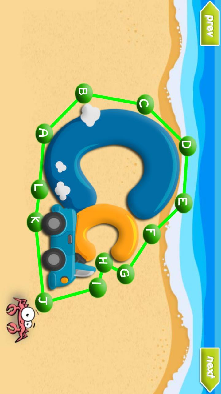 * ส่วนต่อประสานผู้ใช้เกม ABC Alphabet นั้นง่ายด้วยการชี้นำภาพที่ชัดเจนสำหรับเด็ก