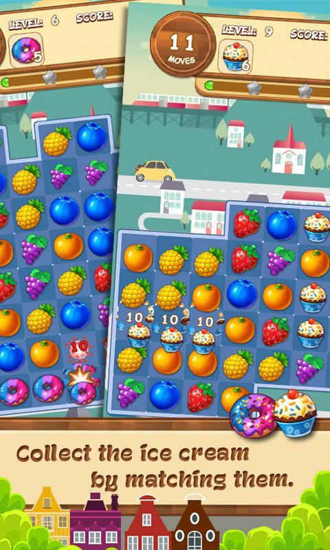 - จับคู่ผลไม้ 5 ตัวในรูปแบบข้ามเพื่อสร้างผลไม้ฟ้าผ่า