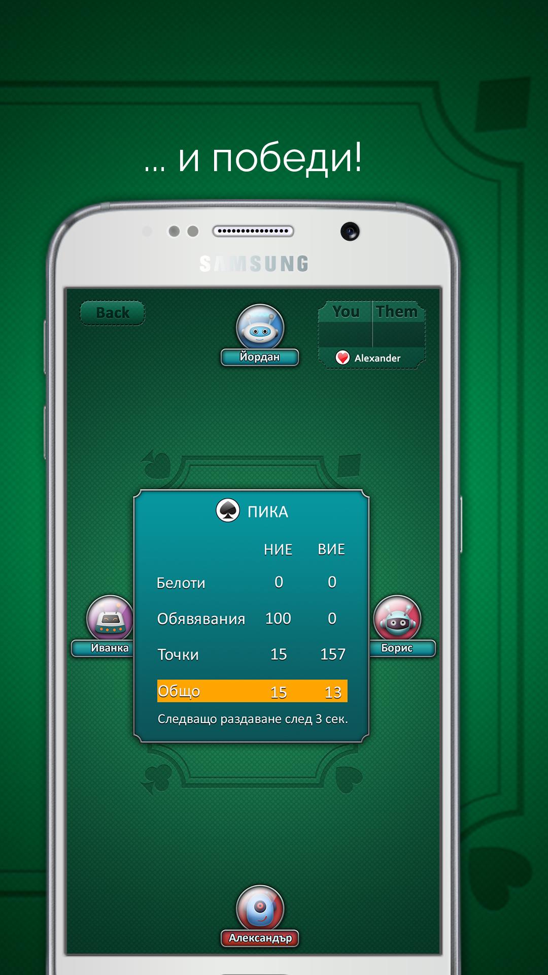 Bot Belotеเป็นเกม Belote ใหม่ของคุณท้าทายให้คุณแข่งขันกับปัญญาประดิษฐ์ของบอท