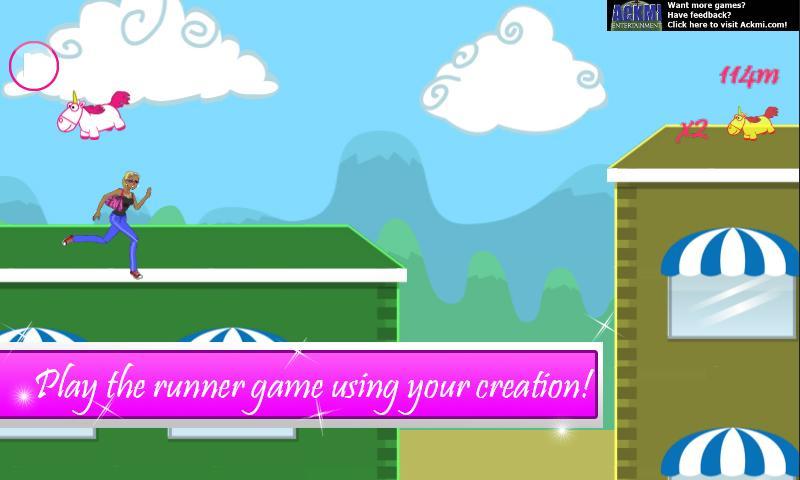- ใหม่: ตอนนี้คุณสามารถเล่นเกมด้วยการสร้างสรรค์ของคุณ! สร้างผู้หญิงของคุณและเล่นเกมนักวิ่ง- แข่งข้ามหลังคาเก็บยูนิคอร์นให้ได้มากที่สุดและดูว่าคุณสามารถไปได้ไกลแค่ไหน!