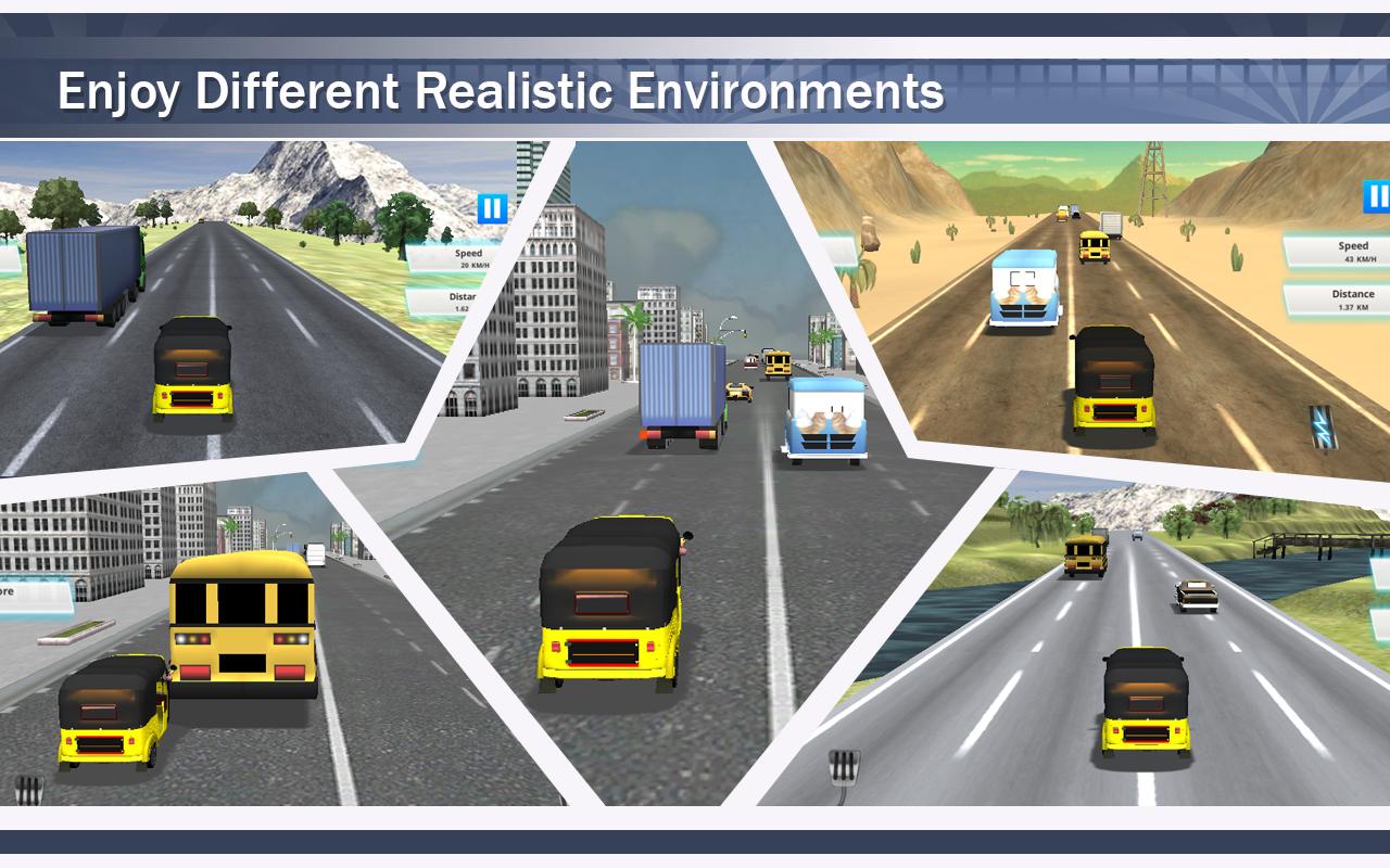1. เกม Rickshaw อัตโนมัติทางหลวงให้บริการจำลองการจราจรบนทางหลวง 3 มิติ ขับรถลากอัตโนมัติในทางหลวง Crowdy ทดสอบทักษะการแข่งทางหลวงของคุณด้วยพวงมาลัยและเร่งความเร็ว หลีกเลี่ยงรถยนต์และรถบรรทุกที่มาในทิศทางของคุณ ตรวจสอบคะแนนของคุณในขณะที่ล้างระดับในกระดานคะแนน