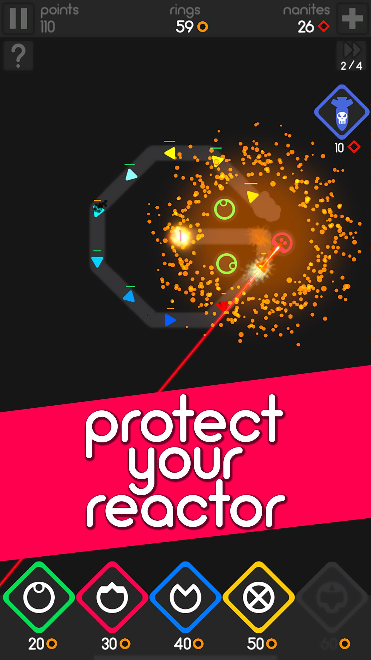 ตั้งอยู่ในจักรวาลไซไฟแห่งอนาคตคุณต้องปกป้องเครื่องปฏิกรณ์ของอาณานิคมจากคลื่นของผู้รุกรานมนุษย์ต่างดาว ด้วยกลยุทธ์ที่วางแผนไว้อย่างรอบคอบคุณจะสร้างการป้องกันอัพเกรดหอคอยและต่อสู้ผ่านระดับที่ยากขึ้นเรื่อย ๆ เพื่อหยุดการโจมตีของมนุษย์ต่างดาวที่มีสีสัน