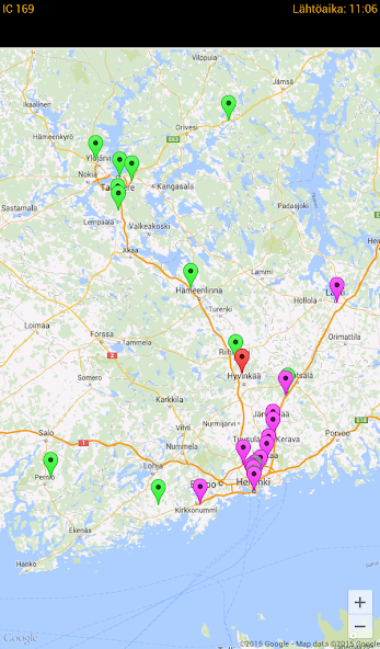 该应用程序显示地图上的本地和长距离列车位置。