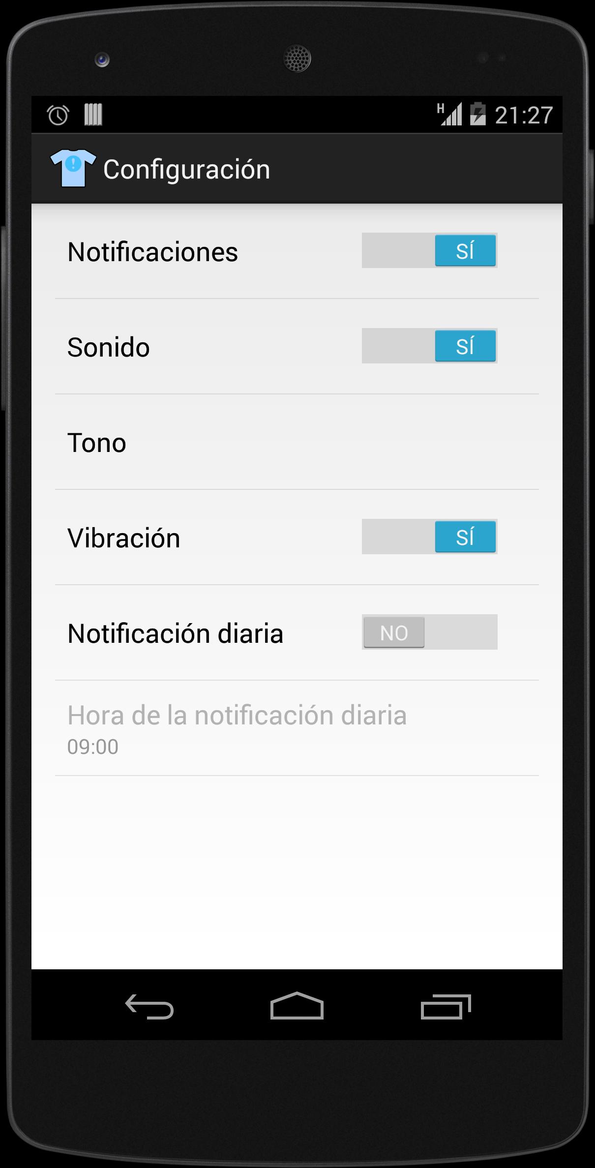 - 每日通知:启用/禁用每日通知。启用此选项后,该应用程序每天仅通知新T恤。