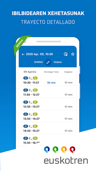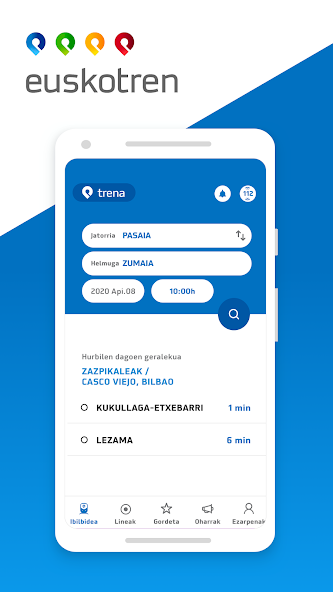 Euskotren官方申请可在巴斯克,西班牙语,英语和法语提供。