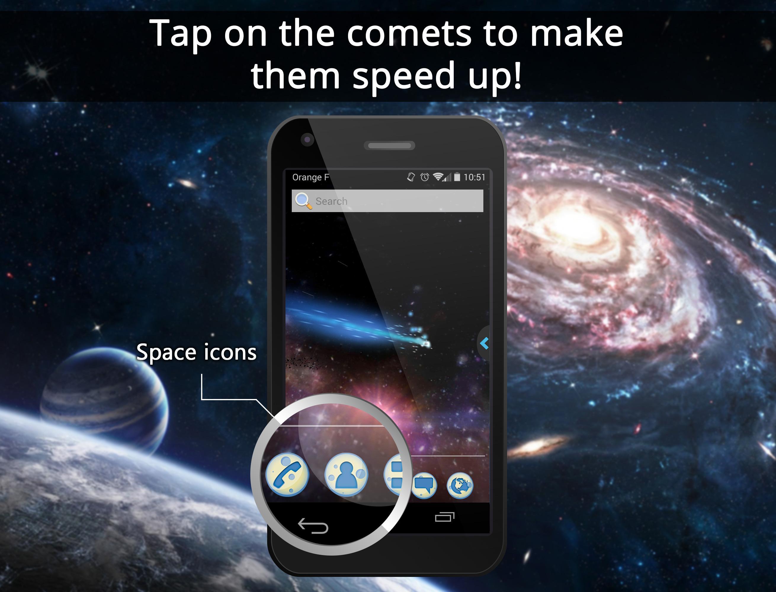 用彗星,星星,行星和星系包围自己 - 从未离开地球!在Awesome UR 3D Space Galaxy Live Theme中寻找流星和巨型行星!