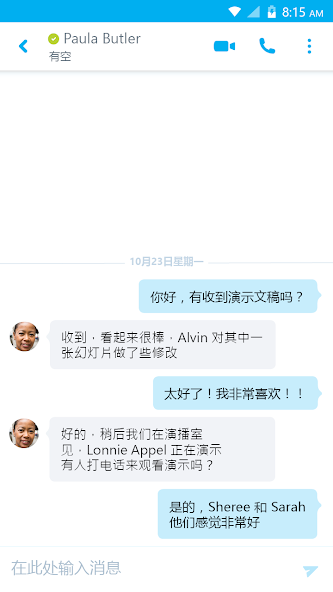 Skype for Business ,以前是Lync 2013,用于Android,将Lync和Skype的功能扩展到您喜欢的移动设备:无线的语音和视频,无线存在,即时消息,即时消息,会议,会议以及易于使用的界面的呼叫功能。