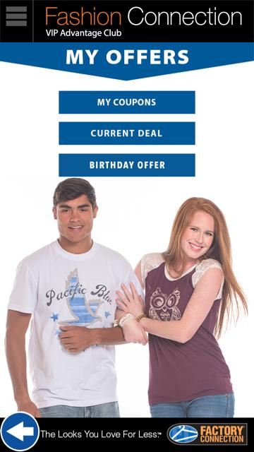 注册并让储蓄开始!介绍Factory Connection的新移动应用程序,专门用于Fashion Connection VIP Advantage Club会员。