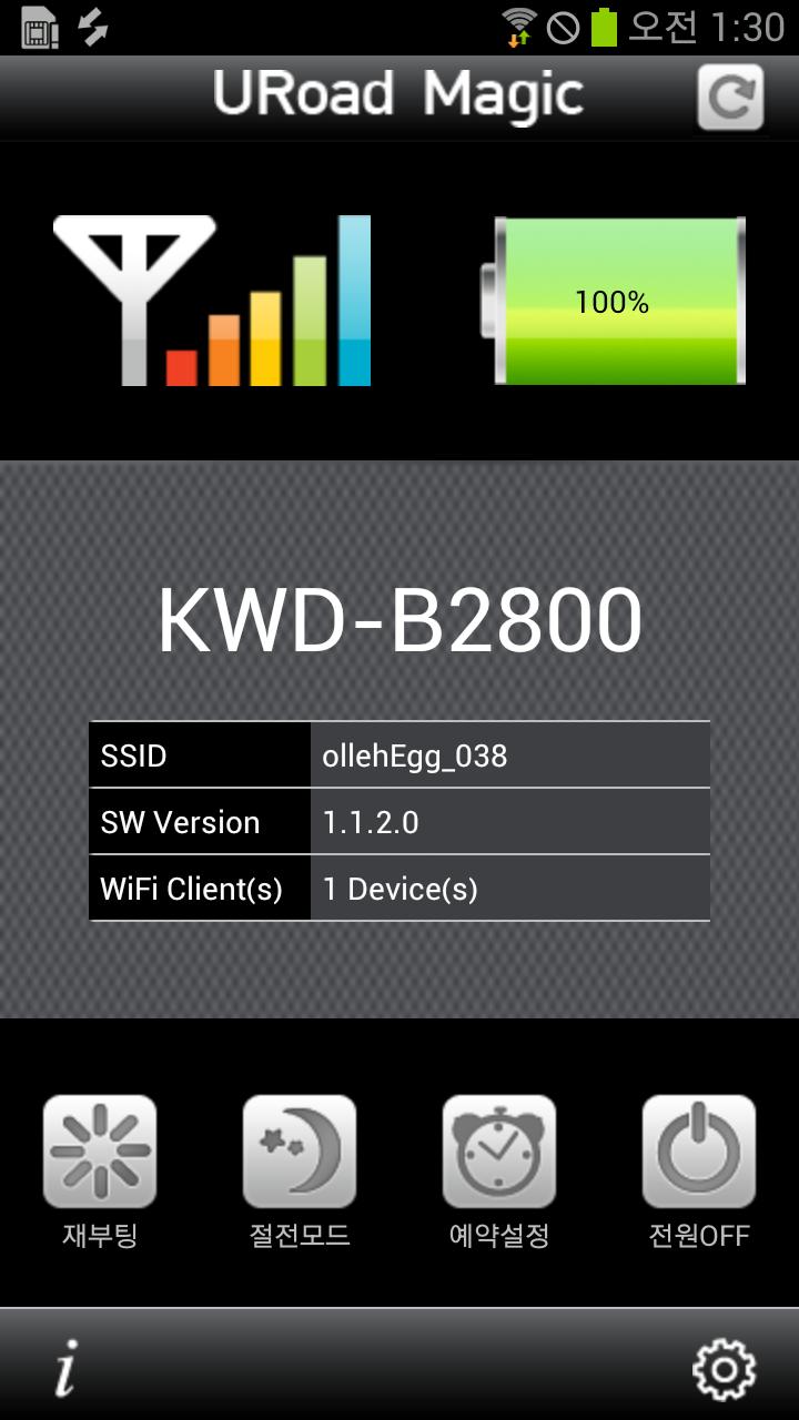 在URoad Magic上,您可以检查该产品的状态并更改设置。