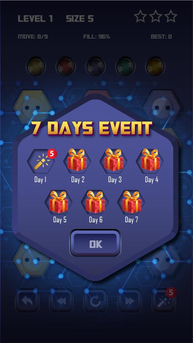 •将所有点与相同的颜色配对,并确保覆盖整个板以解决每个级别的自由流:电线颜色Hexa。用匹配的颜色与线路连接点,以创建流程或管道。 (像水管工)