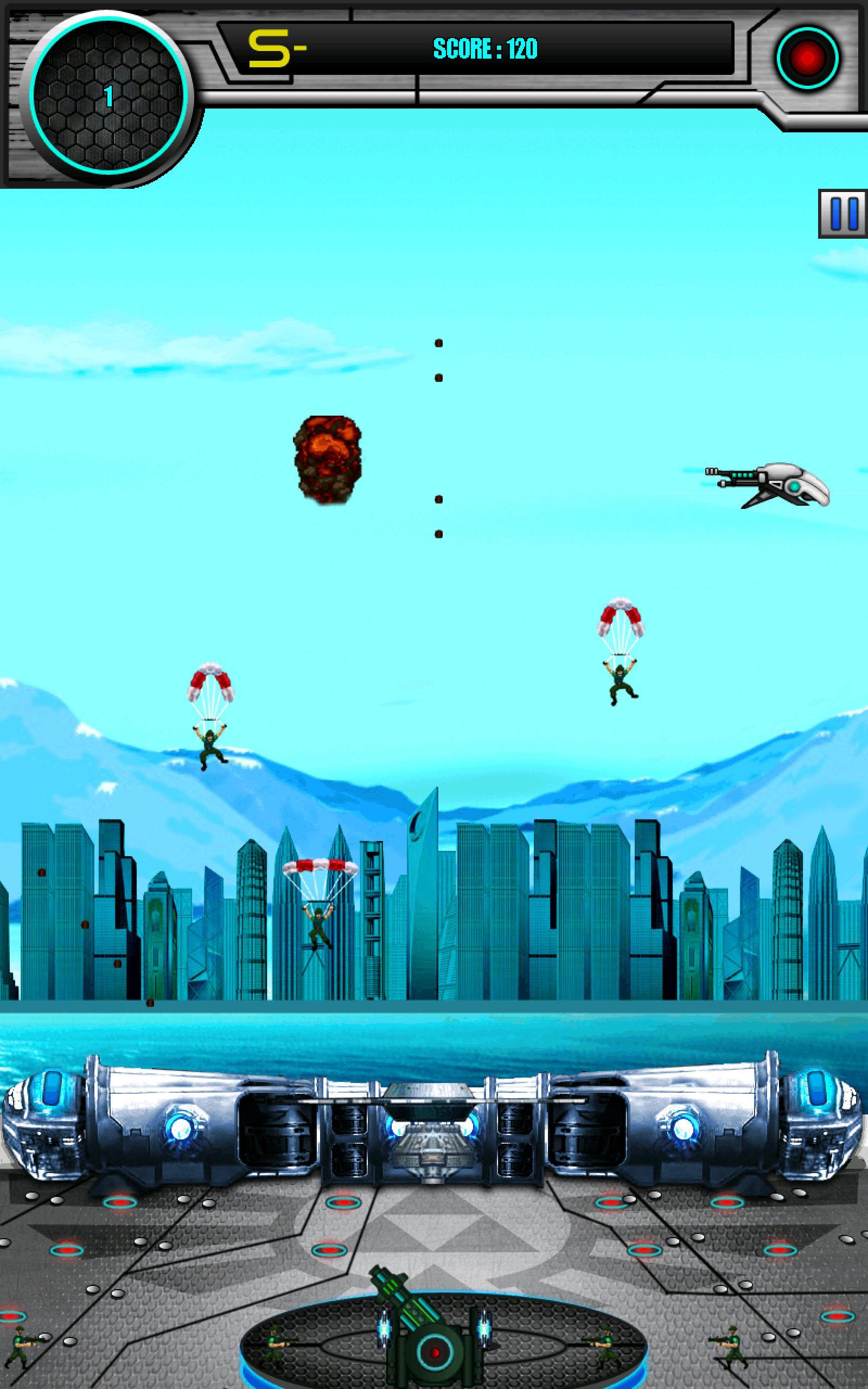 使用坦克并击落入侵的凉棚,空袭者,等离子体轰炸机和等离子体炸弹。如果有4个羊角架在大炮的两侧或大炮被轰炸机轰炸,则游戏结束。