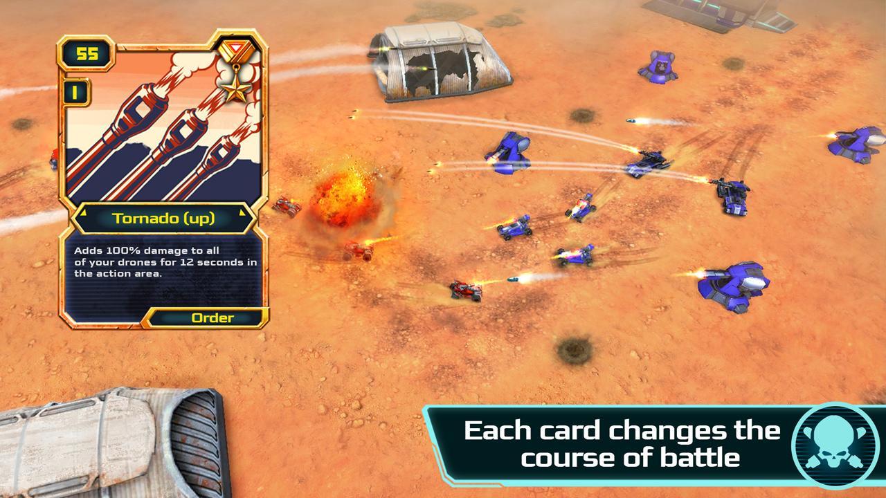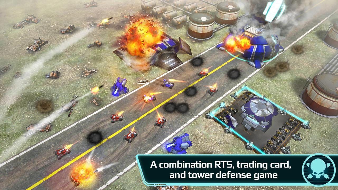 在这款科幻战略游戏中,无人机坦克的指挥大军结合了老式RTSS的经典游戏,交易纸牌游戏策略以及MOBA游戏的关键要素。
