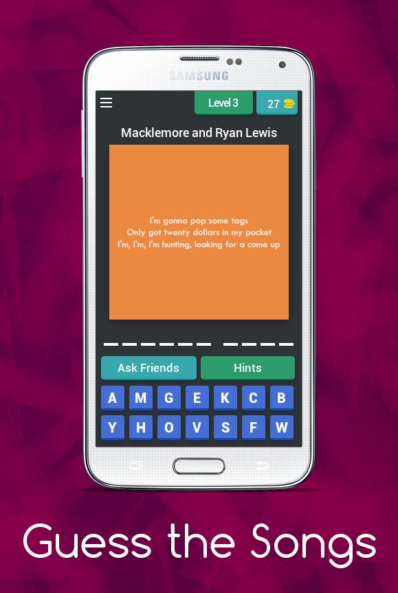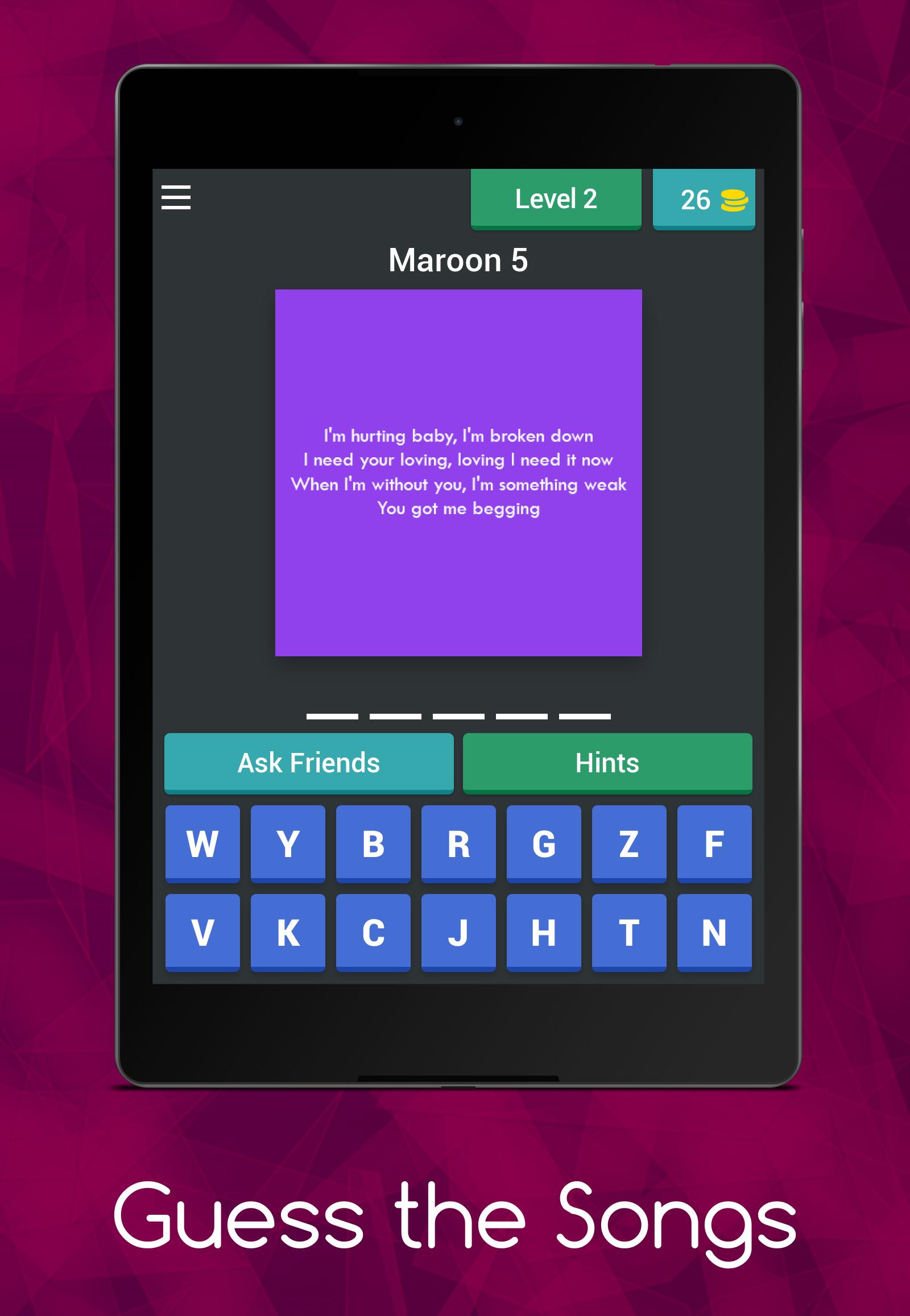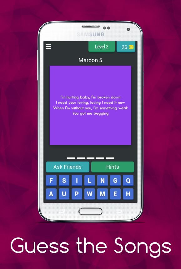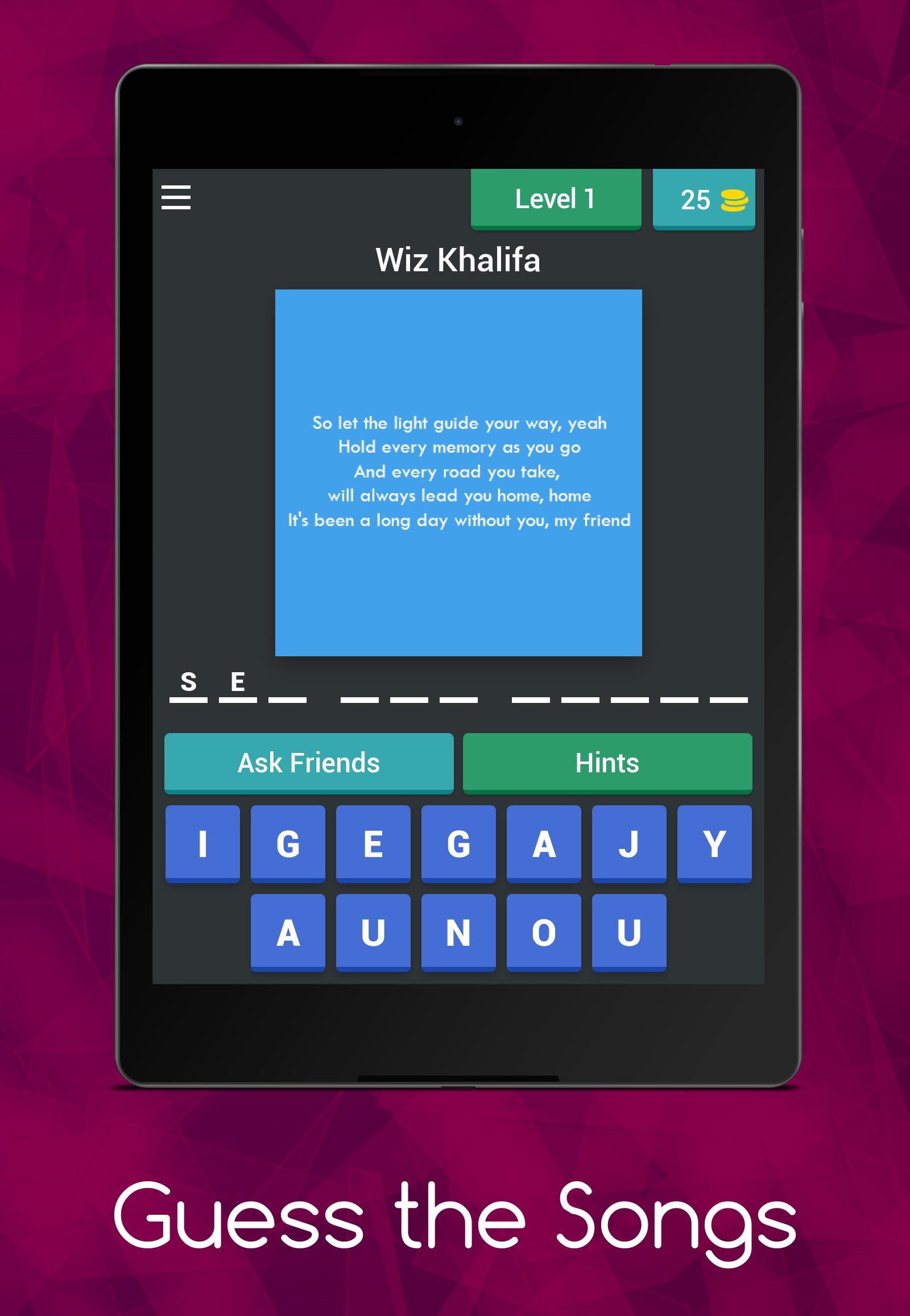 将展示特定歌曲和歌曲主的歌词,您必须猜测那首特定歌曲的标题。