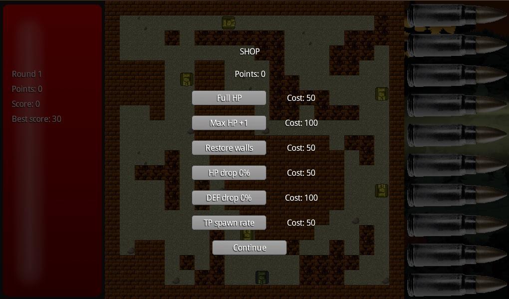 在这个游戏中,玩家的任务是销毁地图上的所有坦克,随后出现老板。游戏的扩展付款版本中有一种生存模式。在生存模式下,您的任务是生存最长的时间,并击败所有出现的对手。他们的数量在每个回合中增加。